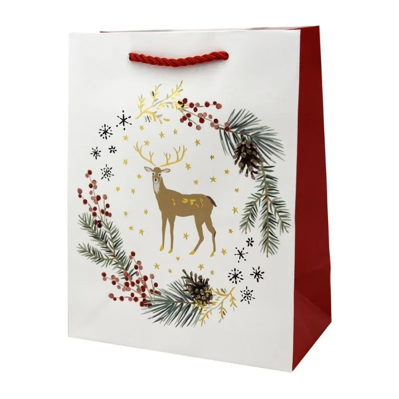 Пакет подарочный "Лесной олень" Материал: веревочная ручка, бумага Размер: 18*10*23 см