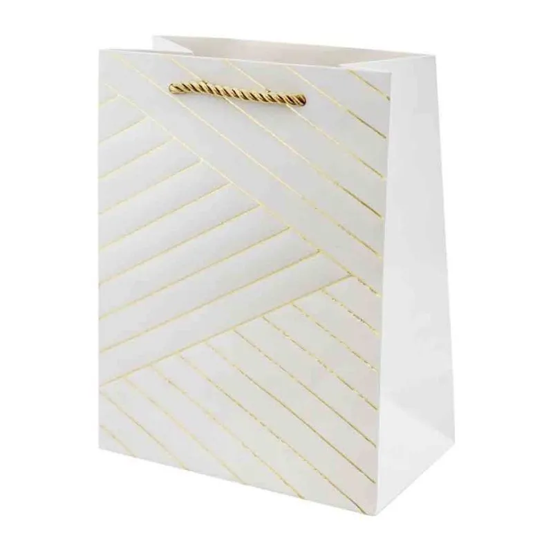 Пакет подарочный "Параллели" Цвет: белый Материал: веревочная ручка, бумага Размер: 18*10*23 см