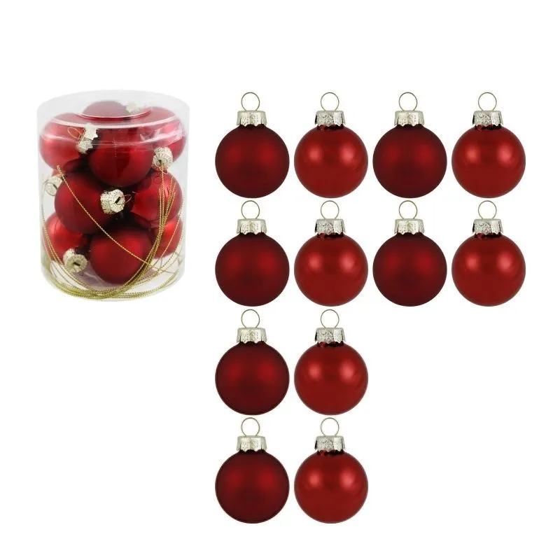 Елочные шары Цвет: красный Количество: 12 шт. Диаметр: 4 см Материал: стекло Упаковка: пластиковый короб, 11,3*9,6*9,6 см