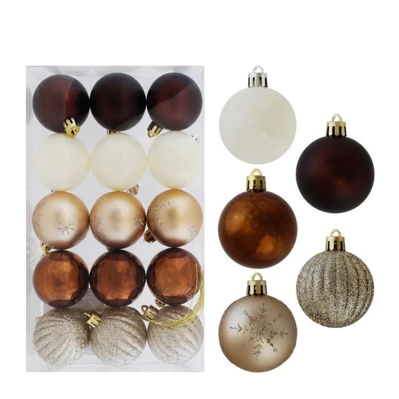 Елочные шары "Вечерний" Цвет: кофейный+молочный+шампань. Количество: 15 шт. Диаметр: 5 см. Материал: пластмасса Упаковка: пластиковый короб, 24*14,5*5 см