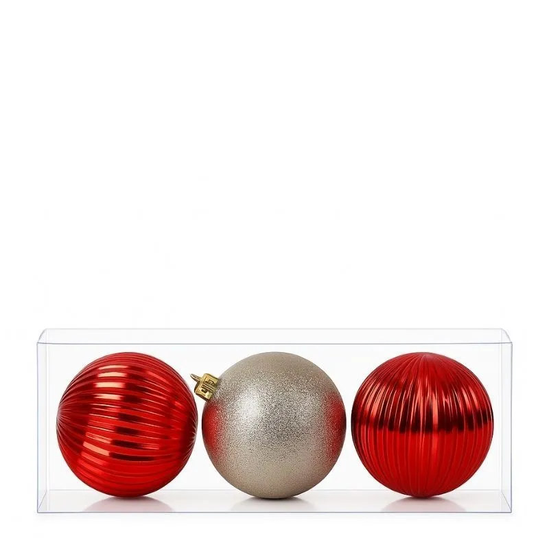 Шары 3шт D8см красный+светлая шампань