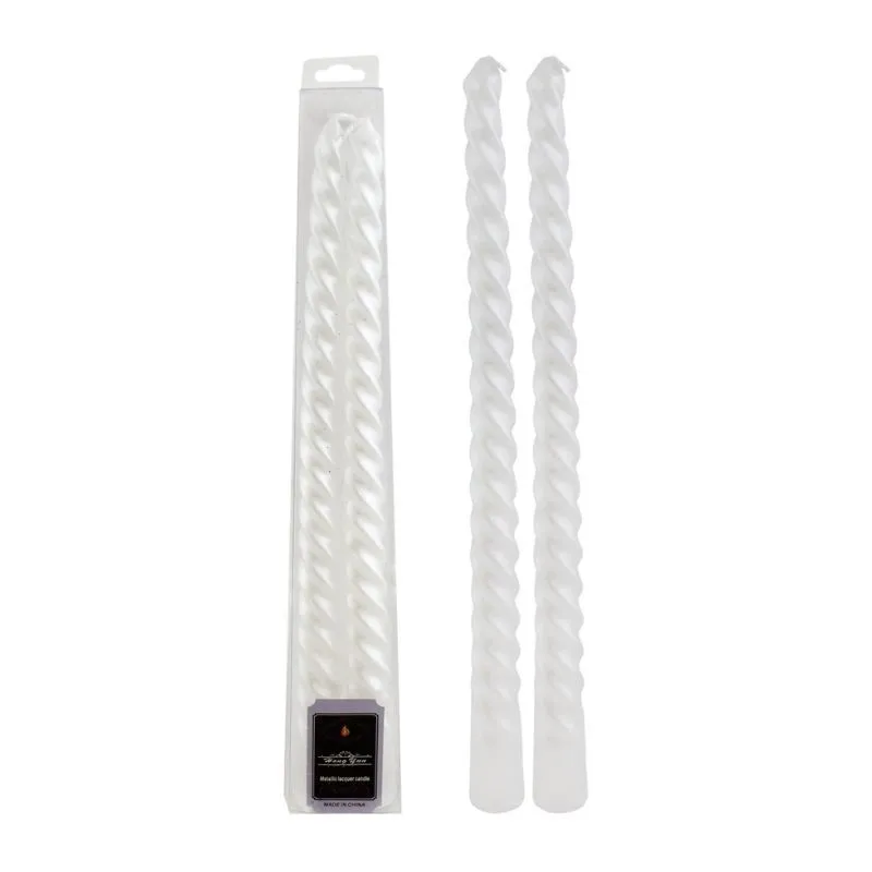 Свечи интерьерные "Витые" Цвет: жемчужный белый Количество: 2 шт. Размер: h 24,5см Материал: парафин, металл Упаковка: пластиковый короб под навес, 25*4 см