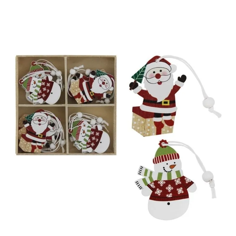 Украшения ёлочные "Дед Мороз и Снеговик" 12 шт., деревянные Цвет: бежевый Размер: 6 см Материал: дерево Упаковка: 13*13*1,6 см
