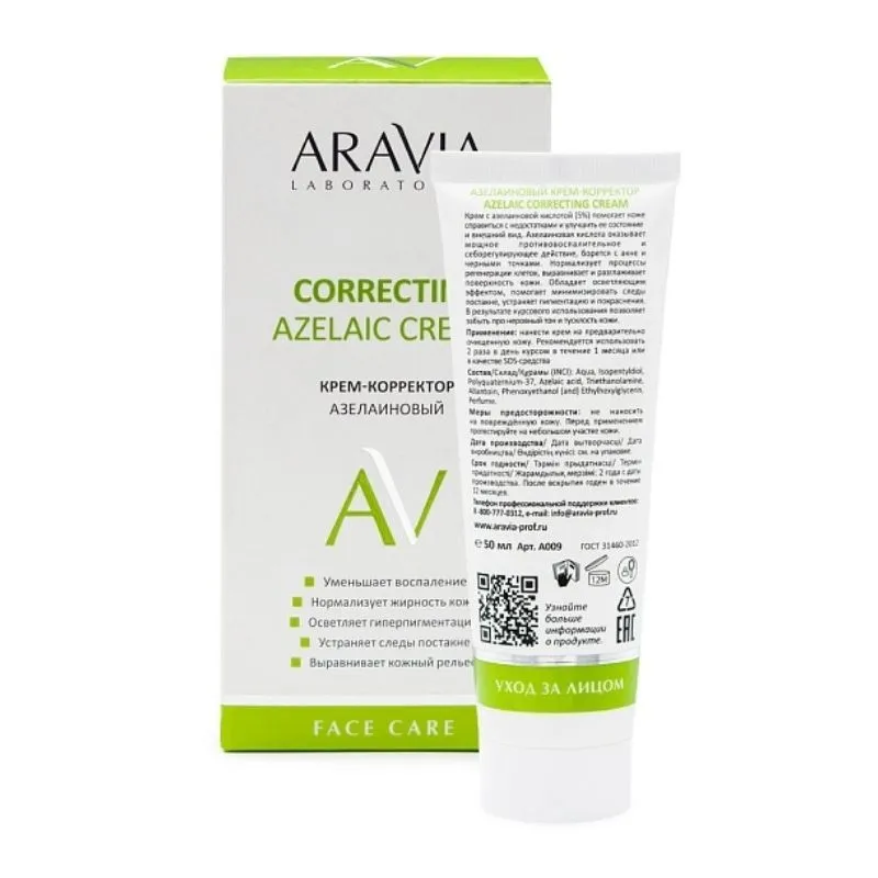 Крем с азелаиновой кислотой (5%) помогает коже справиться с недостатками и улучшить ее состояние и внешний вид. Азелаиновая кислота оказывает мощное противовоспалительное и себорегулирующее действие, борется с акне и черными точками. Нормализует процессы регенерации клеток, выравнивает и разглаживает поверхность кожи. Обладает осветляющим эффектом, помогает минимизировать следы постакне, устраняет пигментацию и покраснения. В результате курсового использования позволяет забыть про неровный тон и тусклость кожи.