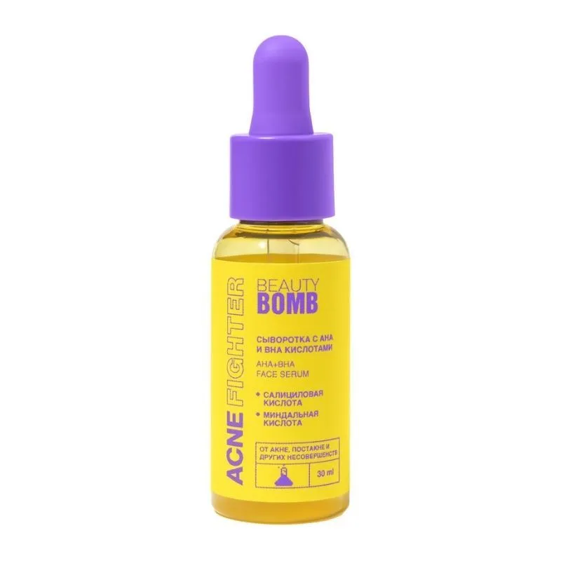 Салициловая кислота обладает себорегулирующим действием и сокращает активность сальных желез. Миндальная кислота очищает поры и устраняет черные точки. Яблочная кислота стимулирует обновление кожи. Гликолевая кислота деликатно отшелушивает и убирает загрязнения. Винная кислота борется с постакне и выравнивает тон кожи.