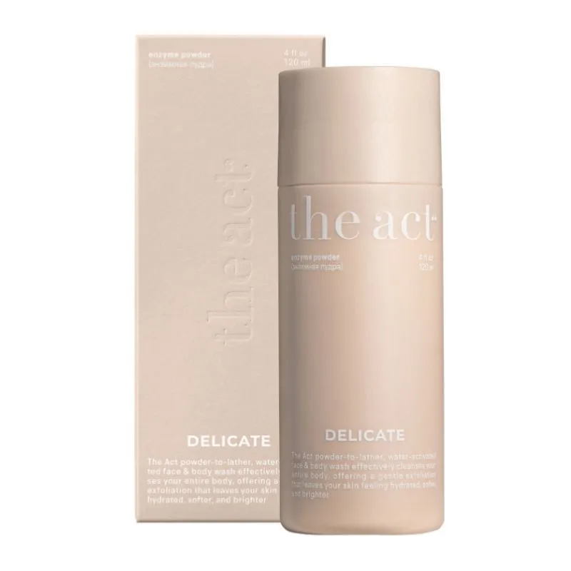 Высокоактивная энзимная пудра The Act Delicate — это средство для умывания лица и ухода за телом на основе фруктовых энзимов, цинка и витамина C. Она обеспечивает глубокое очищение и обновление кожи, оставляя её чистой и без жирного блеска.