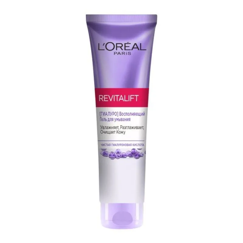 Гель для умывания Revitalift от L'Oreal Paris (Лореаль Париж) обогащен Гиалуроновой Кислотой, которая способствует увлажнению и помогает разглаживать поверхность кожи. Гель превращается в деликатную пенку, что позволяет интенсивно очищать и освежать кожу. День ото дня кожа восполняется влагой и заметно разглаживается. Гиалуроновая Кислота золотой стандарт в уходе за кожей. Помогает восполнить кожу влагой, разгладить и интенсивно увлажнить её.