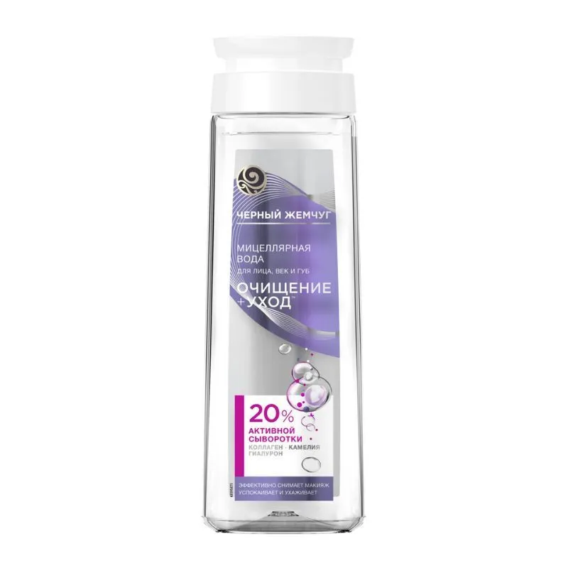 Мицеллярная вода для лица, век и губ Черный Жемчуг Очищение и Уход полностью удаляет макияж, не оставляя неприятной пленки на коже. Средство соответствует новому* стандарту очищения, смягчает и успокаивает кожу во время нанесения и дарит ощущение комфорта.