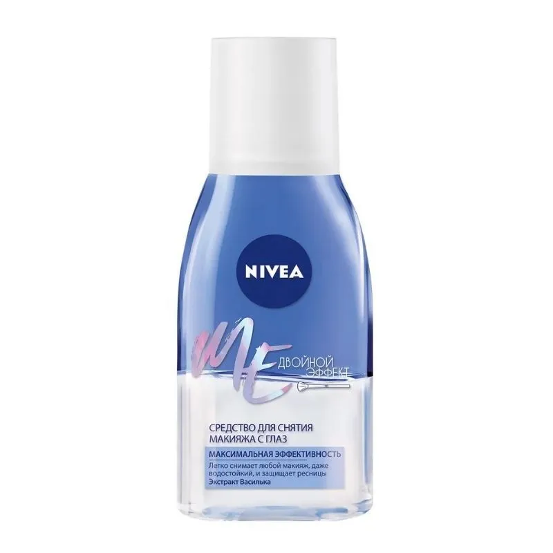 Средство для удаления макияжа с глаз ДВОЙНОЙ ЭФФЕКТ от NIVEA эффективно удаляет даже водостойкий макияж, и, благодаря двухфазной формуле с экстрактом василька, защищает от повреждения ресницы. Оно идеально и бережно очищает кожу вокруг глаз и не оставляет ощущения жирности и липкости. Средство для удаления макияжа с глаз ДВОЙНОЙ ЭФФЕКТ от NIVEA подходит даже для чувствительной кожи и не щиплет глаза при использовании. Подходит при использовании контактных линз.