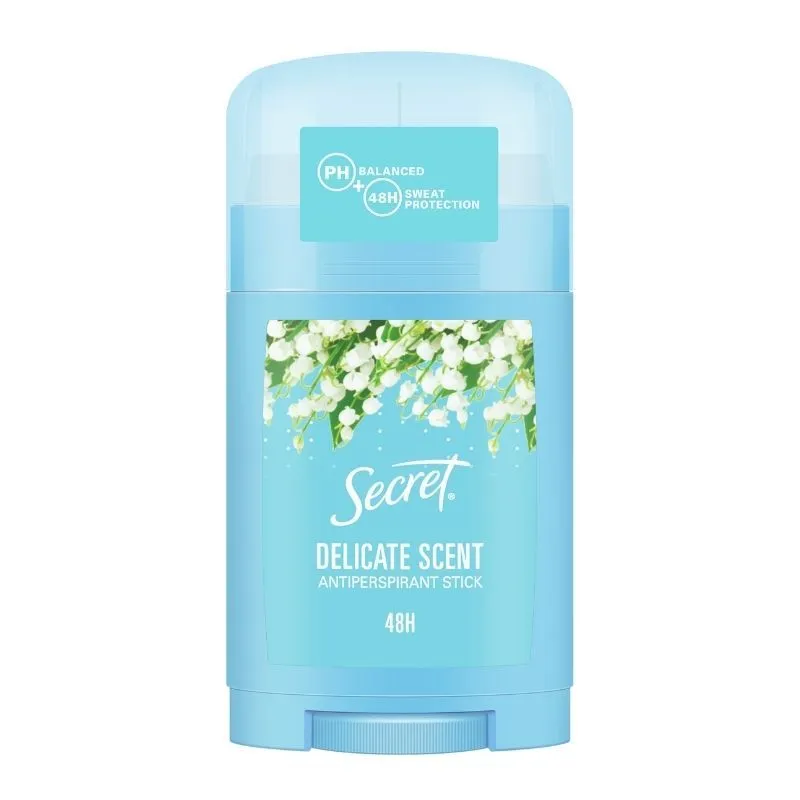 Вам обязательно понравятся продукты из коллекции Secret Fresh Collection с технологией усиления аромата. Они обладают стойким ароматом и сбалансированы по PH. Твердый антиперспирант Secret мгновенно высыхает и не оставляет следов, помогая избавиться от неприятного запаха и пота на 48 часов. Откройте для себя непревзойденную свежесть с твердым антиперспирантом Secret. От бренда женских дезодорантов №1 в Америке. - Сохраняйте непревзойденную свежесть в течение всего дня с насыщенным и расслабляющим ароматом Деликат твердого дезодоранта-антиперспиранта;продукт сбалансирован по PH и не оставляет следов - Забудьте о белых пятнах на одежде с невидимым, мгновенно высыхающим твердым дезодорантом - Неприятный запах и пот никак не сочетаются с его технологией защиты от неприятного запаха и пота на 48 часов - Помогает справиться с неприятным запахом - Наслаждайтесь сухостью, отсутствием неприятного запаха и непревзойденной свежестью с невидимым твердым дезодорантом-антиперспирантом Secret