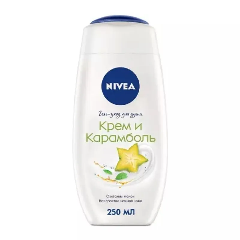 Крем и Карамболь с маслом монои NIVEA это крем-гель для душа, который способен поднять настроение и наполнить жизненными силами не только после неспешного пробуждения, но и после насыщенного трудового дня. При первом использовании этого средства для мытья, все тело окутает невероятно приятный аромат тропических фруктов.