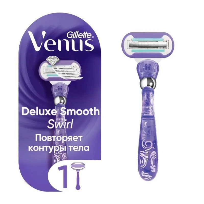 Женская бритва Venus Swirl. Venus Swirl - это лучшие лезвия Venus и ручка с запатентованным шариком Flexiball. Благодаря технологии FlexiBall бритва легко адаптируется к контурам вашего тела для безупречного бритья. Преимущества: - 5 лезвий и технология FlexiBall позволяет удалить фактически каждый волосок; - Встроенная технология FlexiBall легко адаптируется к контурам вашего тела, обеспечивая максимальный контакт между бритвой и кожей, даже в таких проблематичных местах, как лодыжки; - Каждое из пяти лезвий мягко вытягивает волосок, срезая его ближе к корню. Результат - гладкость длится еще дольше! - Лезвия с алмазоподобным покрытием легко срезают волоски, обеспечивая невероятно гладкое бритье. Качественное бритье — меньше движений! Любая сменная кассета Venus подходит к любой бритвенной ручке Venus (кроме Simply Venus и Venus для зоны бикини). Страна производитель- Польша. Срок годности: 60 месяцев.