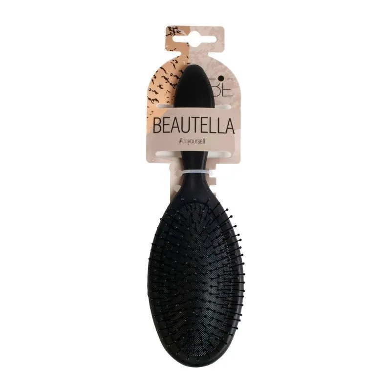Овальная массажная пластиковая расческа Beautella мягко воздействует на кожу головы и распутывает волосы.