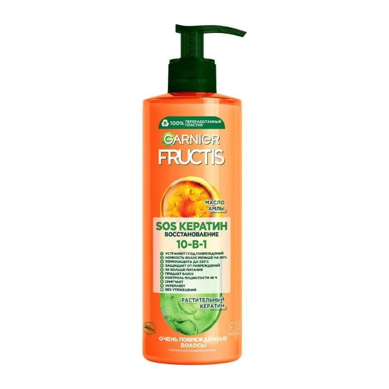 Комплексный несмываемый крем Fructis «SOS Спасатель волос 10 в 1» предназначен для термозащиты и ухода за поврежденными, окрашенными, ломкими и секущимися волосами. Выполняет 10 функций, среди которых восстановление, защита цвета, питание, придание блеска, смягчение и укрепление волос.