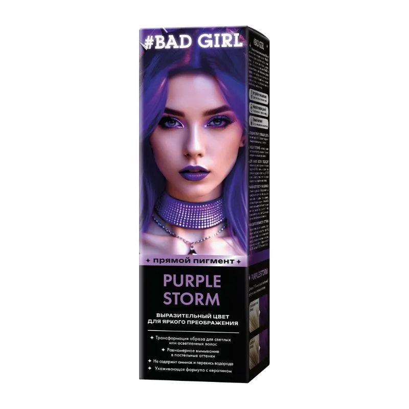Bad Girl — это больше, чем краситель прямого действия, это свобода самовыражения и смелость просто быть собой. BAD GIRL Purple Storm – для тех, кто готов во всеуслышание заявить о себе.