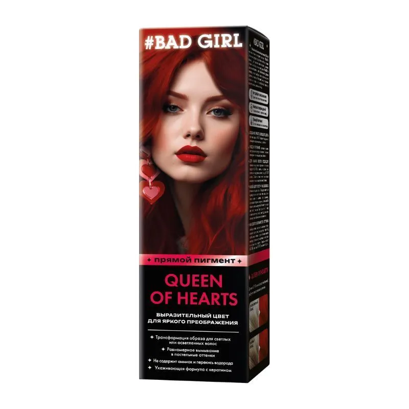 Bad Girl — это больше, чем краситель прямого действия, это свобода самовыражения и смелость просто быть собой.BAD GIRL Queen of Hearts – для тех, кто привык покорять сердца окружающих.
