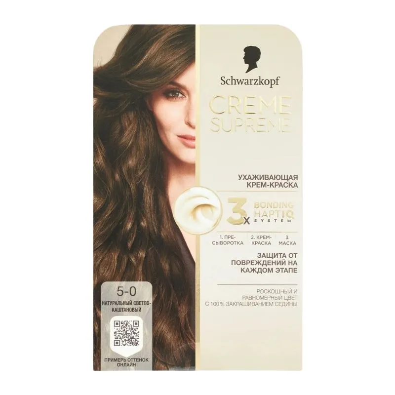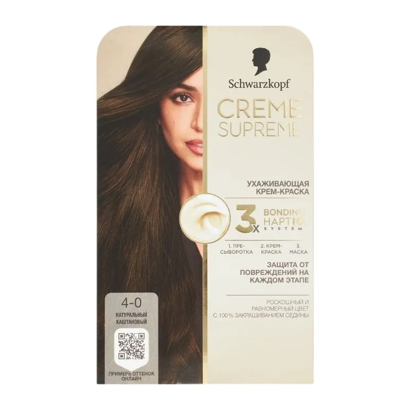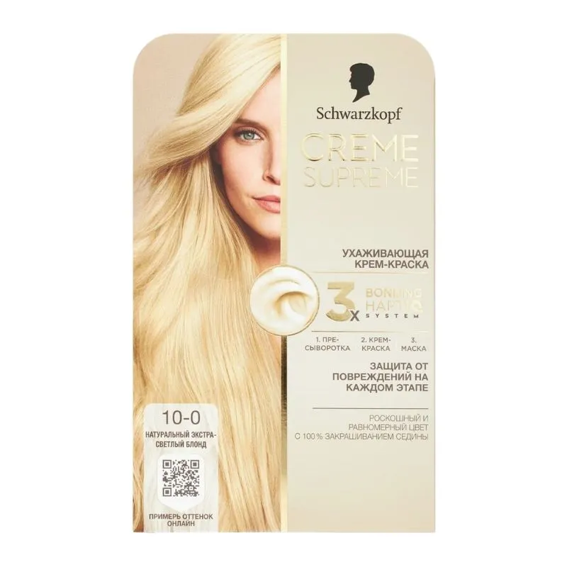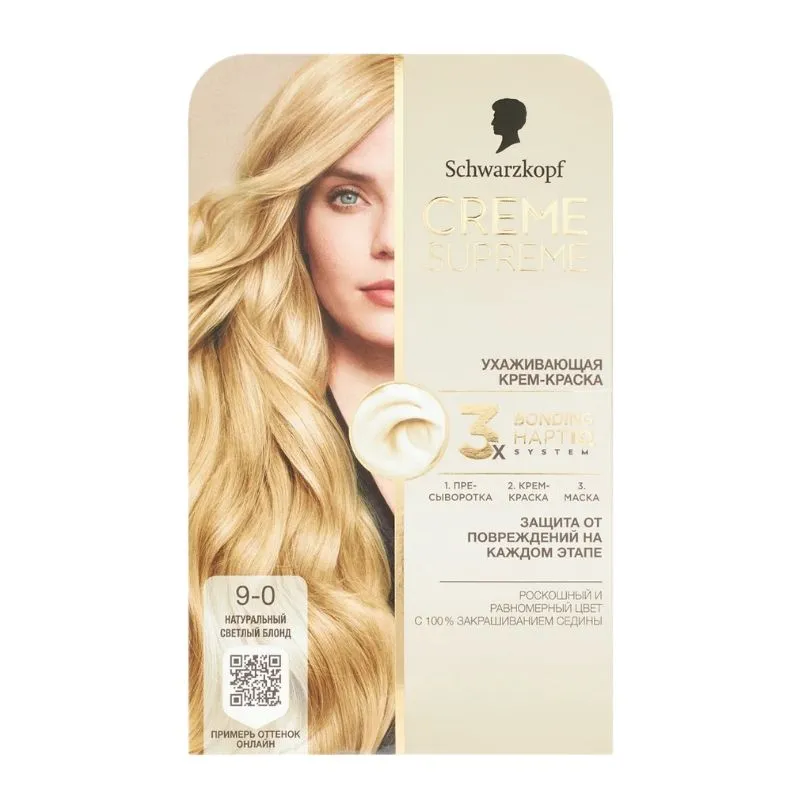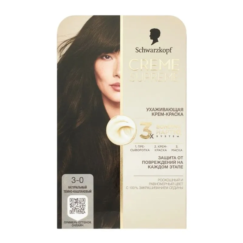 1. Подготовьте волосы с помощью сыворотки Schwarzkopf Creme Supreme Bonding перед окрашиванием. 2. Нанесите кремовую краску Schwarzkopf Creme Supreme Bonding. Краску и проявляющий крем смешивайте в соответствии с инструкцией. Нанесите смесь так, чтобы покрыть все волосы, и после указанного времени воздействия смойте водой. 3. Используйте уходовую маску Schwarzkopf Creme Supreme Bonding. Оставьте на волосах до 5 минут, затем смойте.