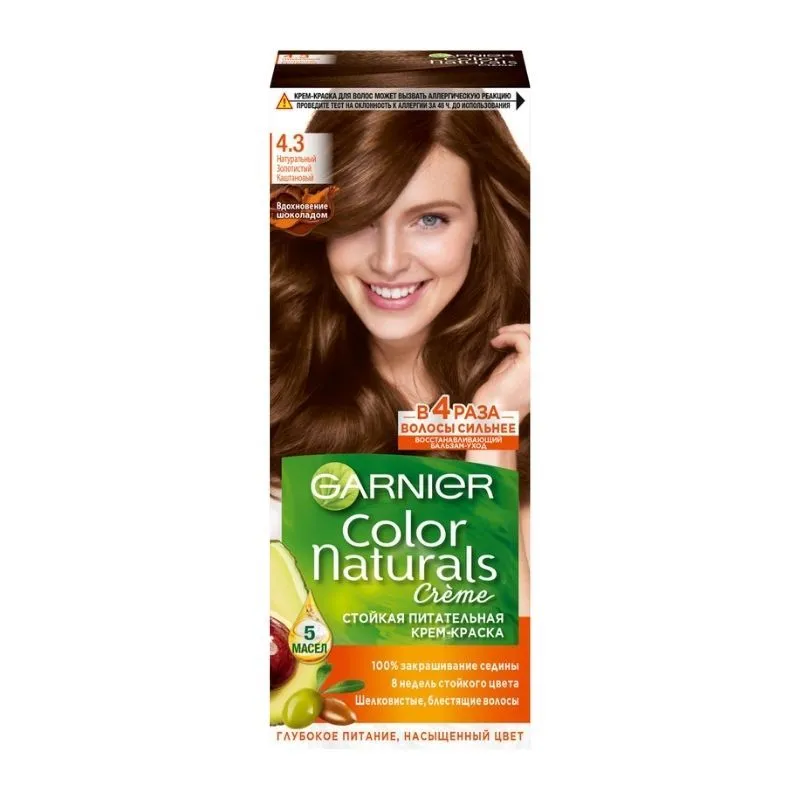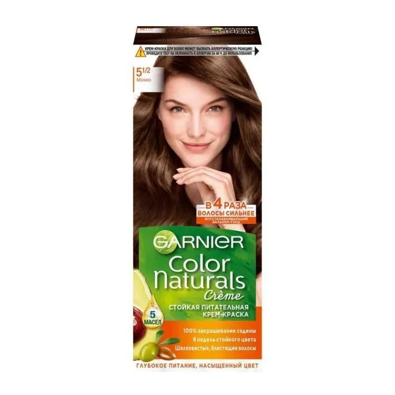 Крем-краска, сочетающая в себе окрашивание и питательный уход благодаря формуле с 5 маслами: оливы, авокадо, ши, клюквы и арганы. Ее обволакивающая текстура не течет, равномерно распределяется, помогает красящим пигментам и полезным веществам проникать глубже в волокна волос и обеспечивать локонам интенсивный стойкий цвет, 100% покрытие седины, мягкость и шелковистость. Оттенок остается ярким до 8 недель. Бальзам-уход помогает восстановить волосы после окрашивания: увлажняет, укрепляет и смягчает локоны. Ваши локоны мягкие на ощупь и 4 раза более сильные, сияют здоровьем.
