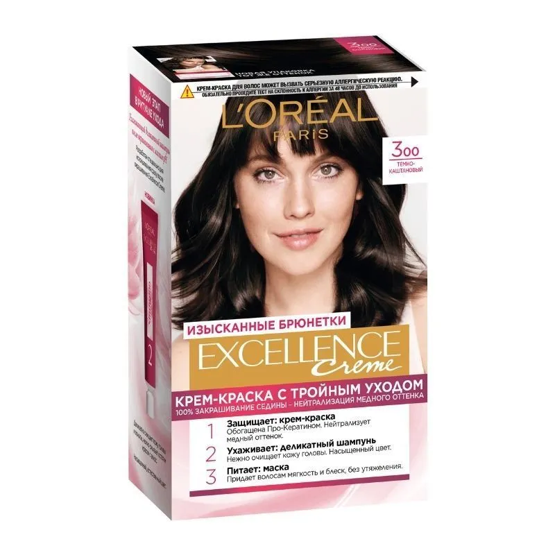 Стойкая крем-краска для волос Excellence Creme – 100% закрашивание седины и тройной уход за кожей головы и волосами: