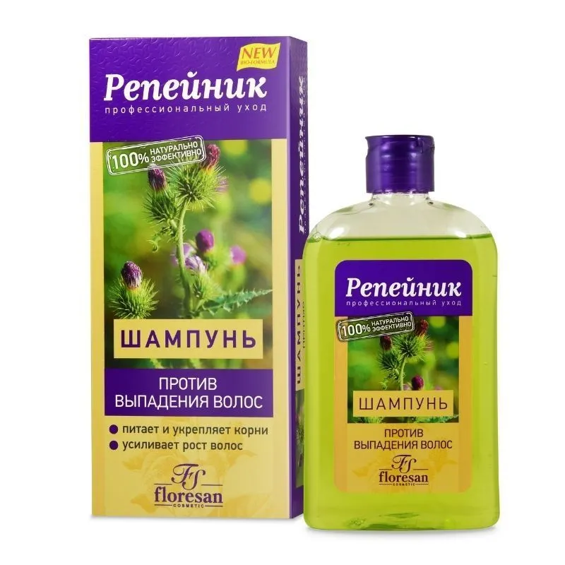 Создан на основе вытяжек корня репейника (лопуха) и шишек хмеля. Формула шампуня оказывает интенсивное оздоравливающее действие на корни и восстанавливает структуру волос. При регулярном применении заметно сокращается выпадение волос, их корни укрепляются. Ваши волосы приобретают естественный блеск и пышность. Идеально сочетать с другими средствами серии «Репейник».