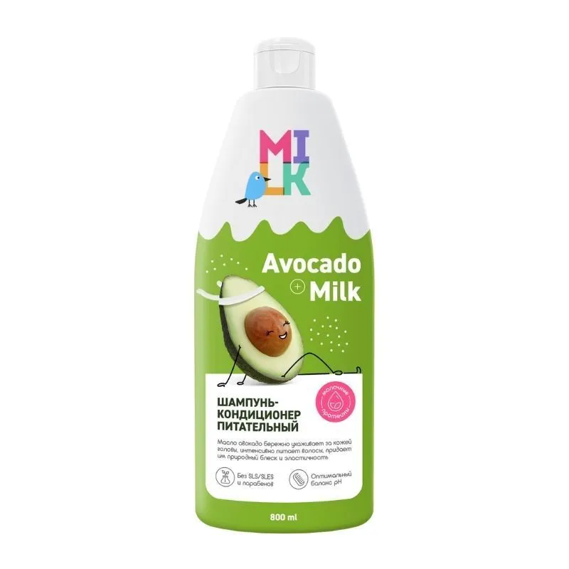 Шампунь-кондиционер MILK с экстрактом авокадо мягко и эффективно очищает кожу головы и волосы, укрепляет их и придает здоровое сияние. Средство обладает кондиционирующим действием, смягчает волосы и облегчает расчесывание. При регулярном использовании локоны становятся упругими и блестящими.