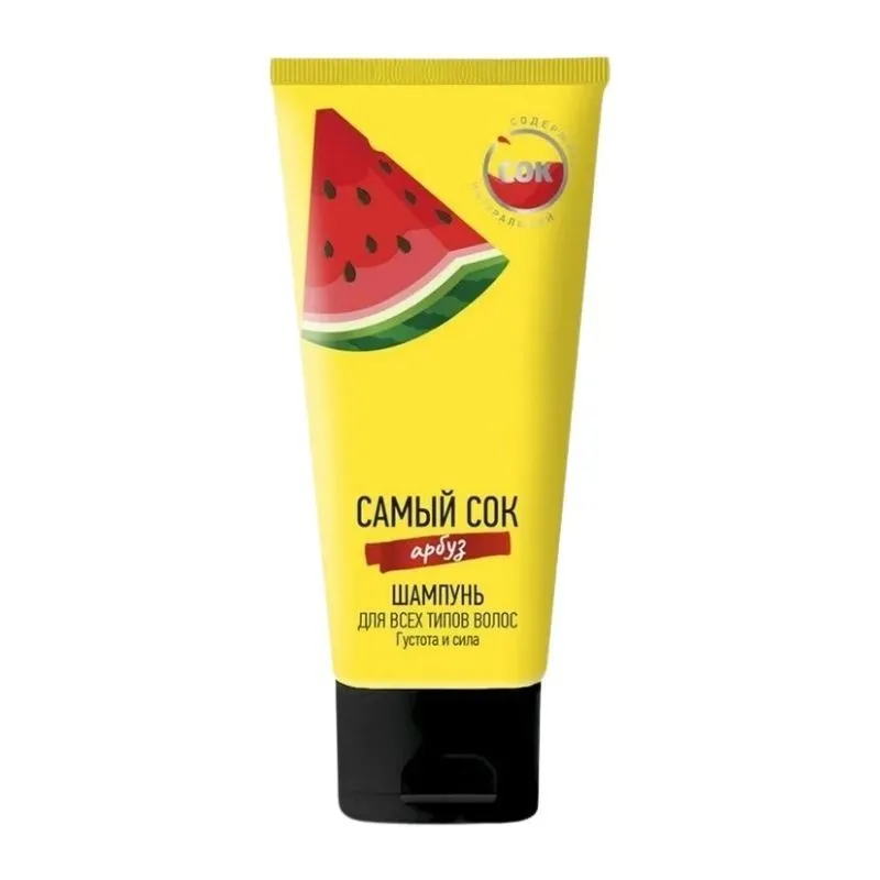 Прояви любовь и заботу о своих волосах с универсальным шампунем со свежим ароматом арбуза. Мягкая формула с пушистой пеной, насыщенная натуральным соком арбуза, содержит комплекс микроэлементов и ниациномид, бережно очищает волосы и кожу головы без пересушивания. Добавь сок в каждый свой день! Результат: чистые ухоженные волосы.