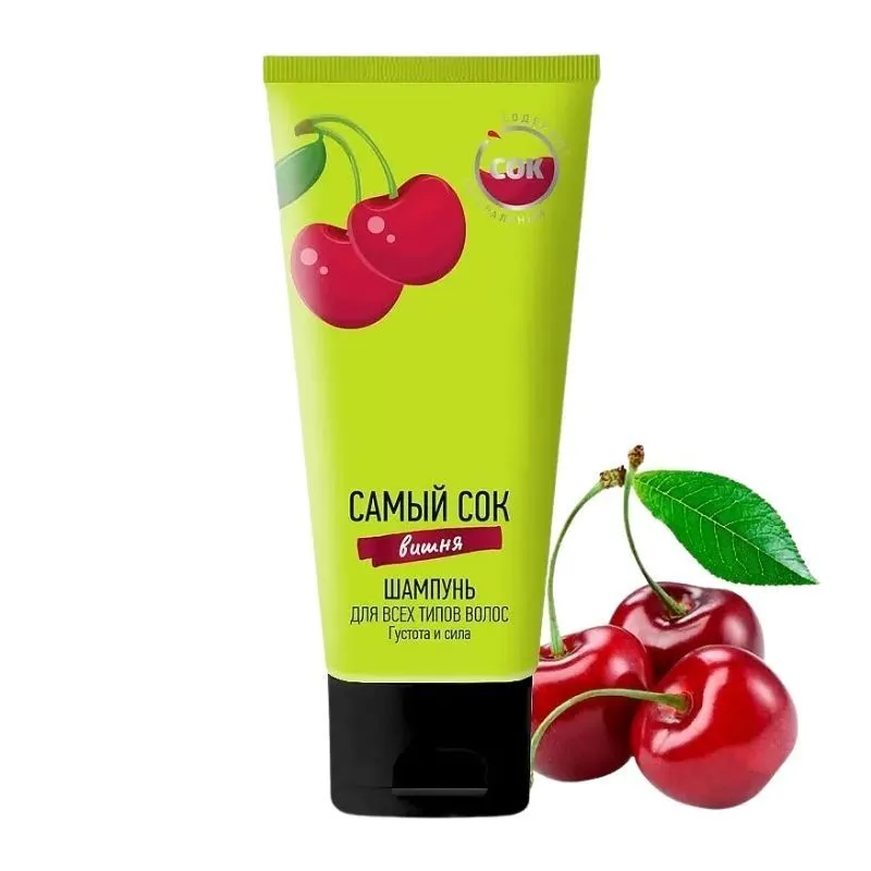 Шампунь Самый сок очищает волосы и кожу головы, при этом не пересушивая пряди. Содержит сок вишни, комплекс микроэлементов и ниацинамид — средство глубоко питает и увлажняет локоны по всей длине. Образует много воздушной пены.