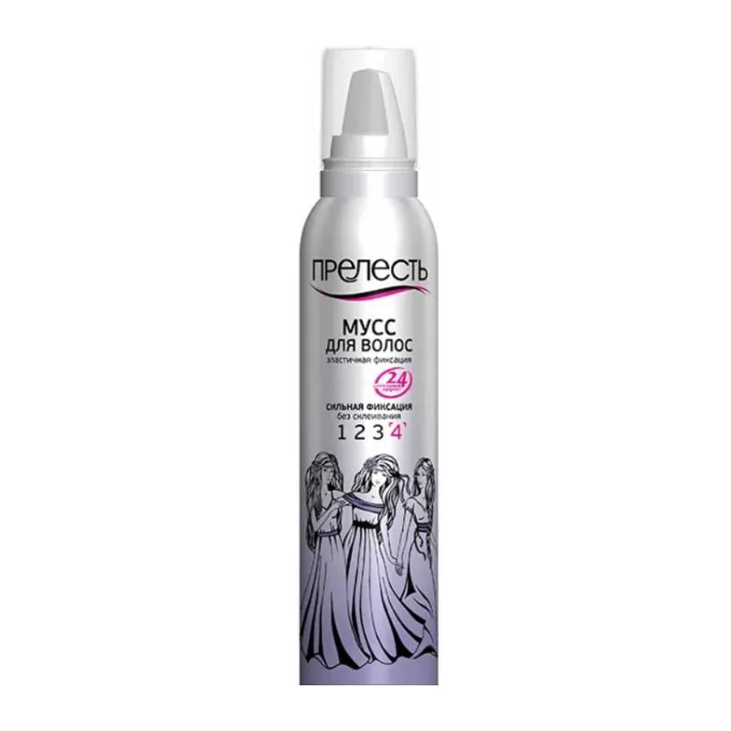 Мусс Прелесть позволяет моделировать прически любой сложности.Благодаря особым свойствам придает прическе пышность. Создает объем. Препятствует возникновению статического электричества и облегчает расчесывание влажных волос